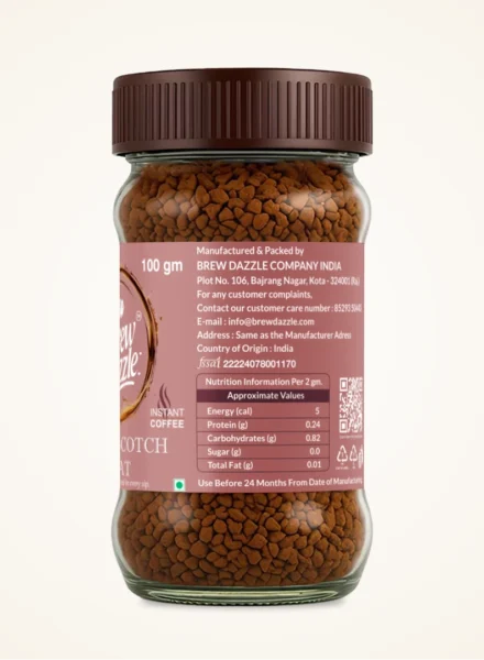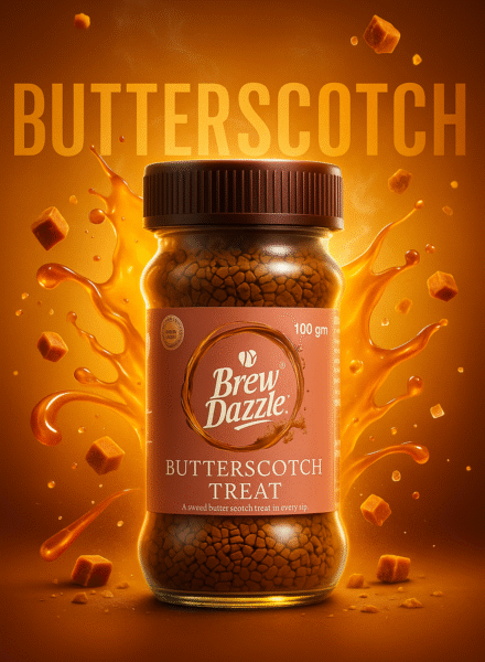 Butterscotch Treat Brew dazzle | 50 gm Coffee Jar | Premium 100% Arabica Instant Flavored Coffee Granules | 100% Pure Arabica | Smooth & Rich Instant Coffee