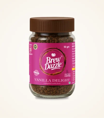 Vanilla Delight Brew Dazzle | 100 gm Coffee Jar | Premium 100% Arabica Instant Flavored Coffee Granules | 100% Pure Arabica | Smooth & Rich Instant Coffee
