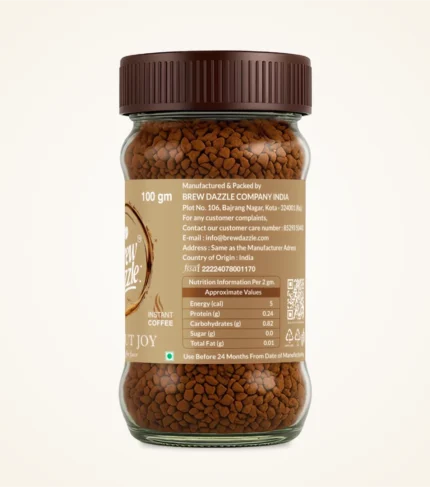 Hazelnut Joy Brew Dazzle Premium | 100 gm Coffee Jar | 100% Arabica Instant Flavored Coffee Granules | 100% Pure Arabica | Smooth & Rich Instant Coffee
