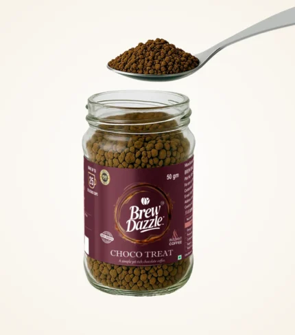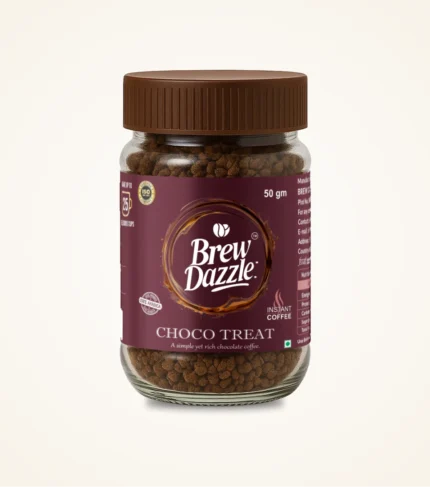 Choco Treat Brew Dazzle | 50 gm Coffee Jar | Premium 100% Arabica Instant Flavored Coffee Granules | 100% Pure Arabica | Smooth & Rich Instant Coffee| Chocolate Flavored