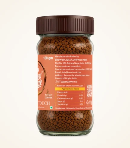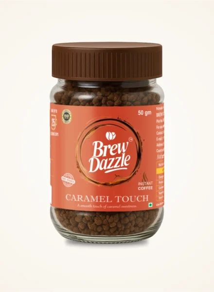 Caramel Touch Brew Dazzle | 100 gm Coffee Jar | Premium 100% Arabica Instant Flavored Coffee Granules | 100% Pure Arabica | Smooth & Rich Instant Coffee