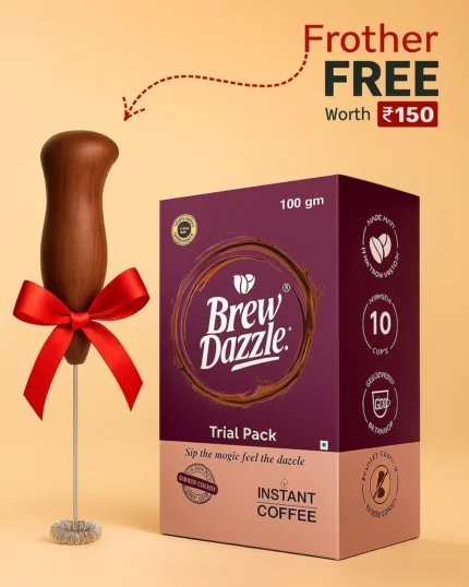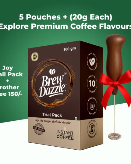 JOY TRIAL PACK | Brew Dazzle Instant Coffee Assortment (100% Arabica, Premium) – 5 Pouches (20g Each) | FREE ₹150 Frother WITH Every Box | Explore 5 Premium Coffee Flavours