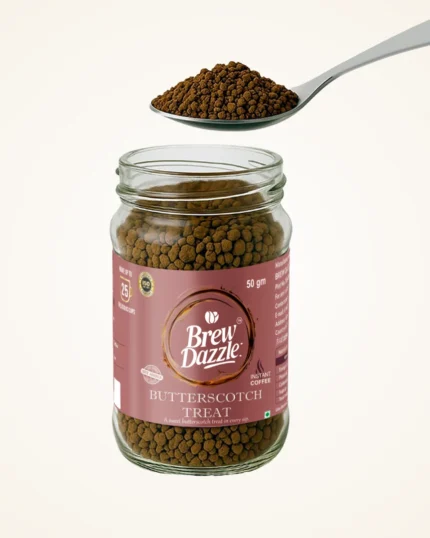 Butterscotch Treat | 100 gm Coffee Jar | Premium 100% Arabica Instant Flavored Coffee | Granules |Smooth & Rich Instant Coffee.