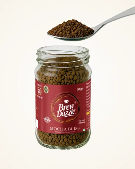 Mocha Bliss Brew dazzle | 50 gm Coffee Jar | Premium 100% Arabica Instant Flavored Coffee Granules | 100% Pure Arabica | Smooth & Rich Instant Coffee