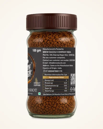 Espresso Shot Brew dazzle | 100 gm Coffee Jar | Premium 100% Arabica Instant Coffee Granules | 100% Pure Arabica | Strong Instant Coffee