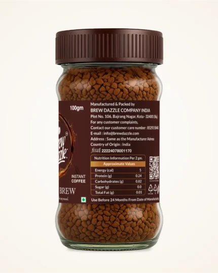 Classic Brew Brew Dazzle | 100 gm Coffee Jar | Premium 100% Arabica Instant Coffee Powder | 100% Pure Arabica | Smooth & Rich Instant Coffee| Original