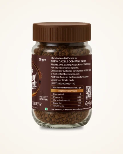 Classic Brew Brew Dazzle | 50 gm Coffee Jar | Premium 100% Arabica Instant Coffee Powder | 100% Pure Arabica | Smooth & Rich Instant Coffee| Original