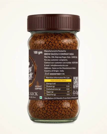 Original Kick Brew Dazzle | 100 gm Coffee Jar | Premium 100% Arabica Instant Coffee Granules | 100% Pure Arabica | Smooth & Rich Instant Coffee| Original Coffee taste
