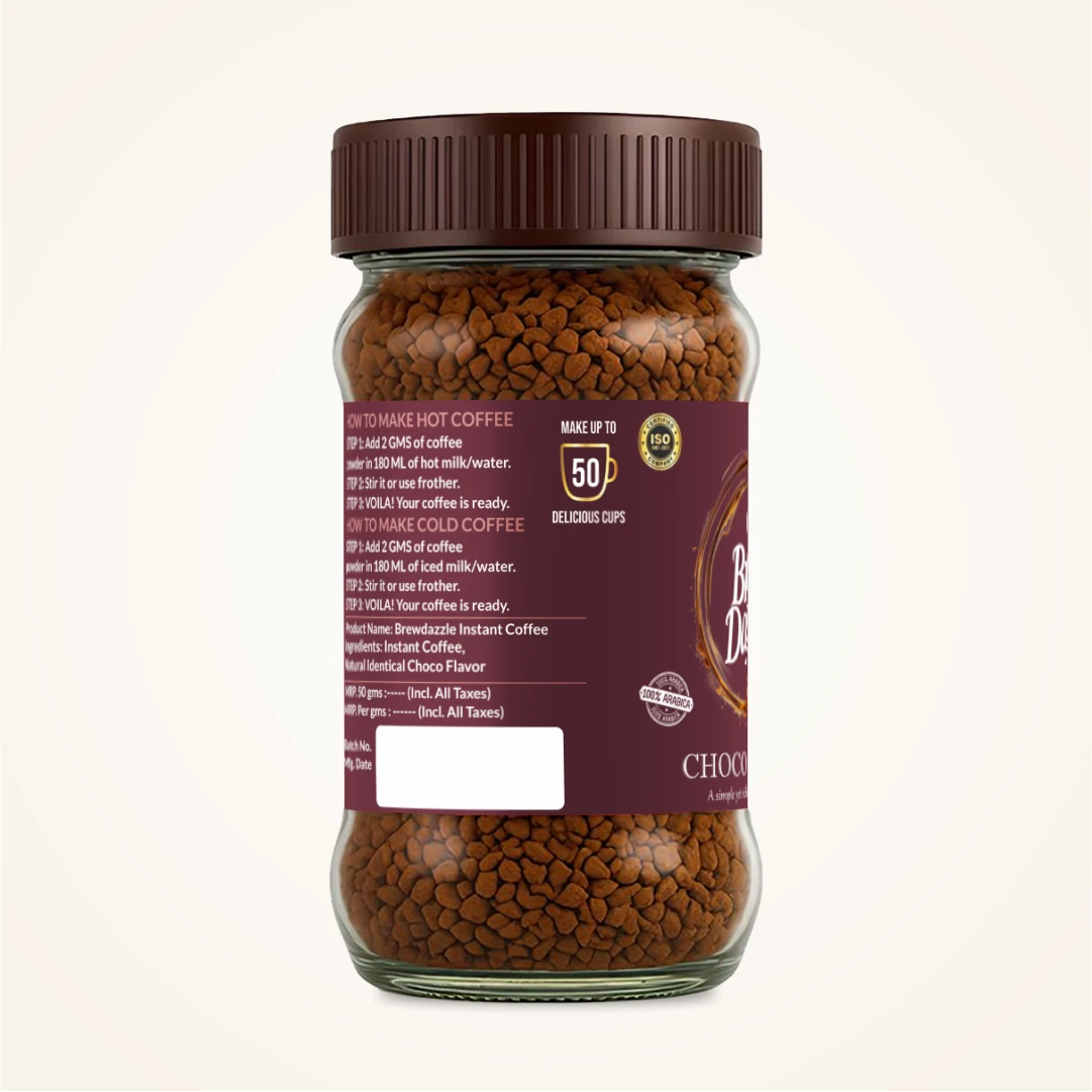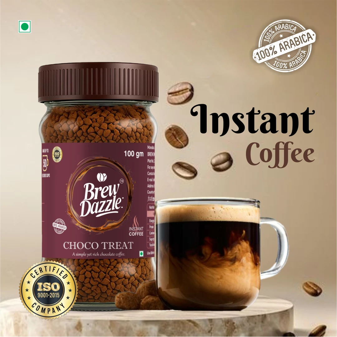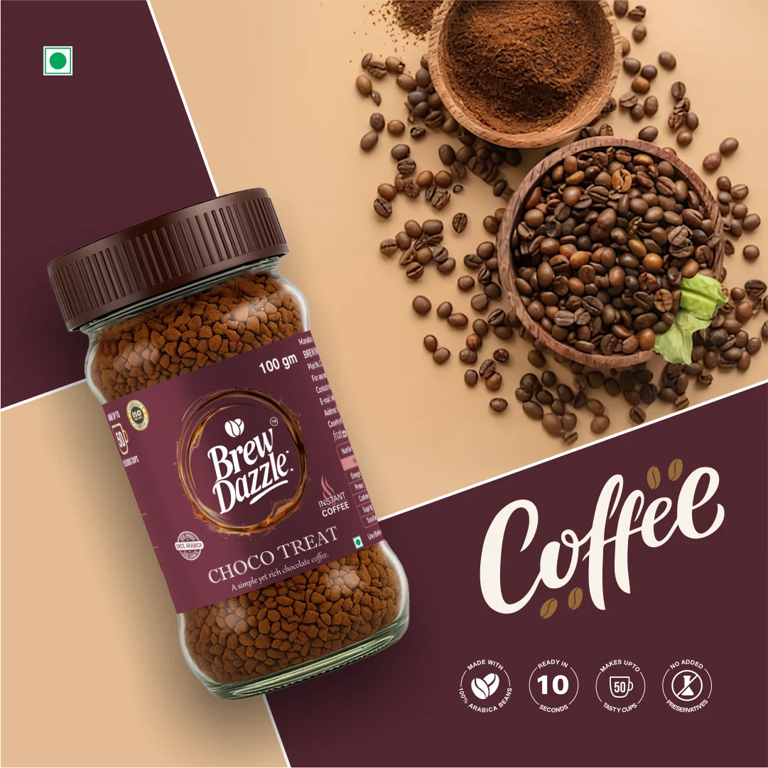 Choco Treat Brew Dazzle | 100 gm Coffee Jar | Premium 100% Arabica Instant Coffee Granules | 100% Pure Arabica | Smooth & Rich Instant Coffee | Chocolate Flavored
