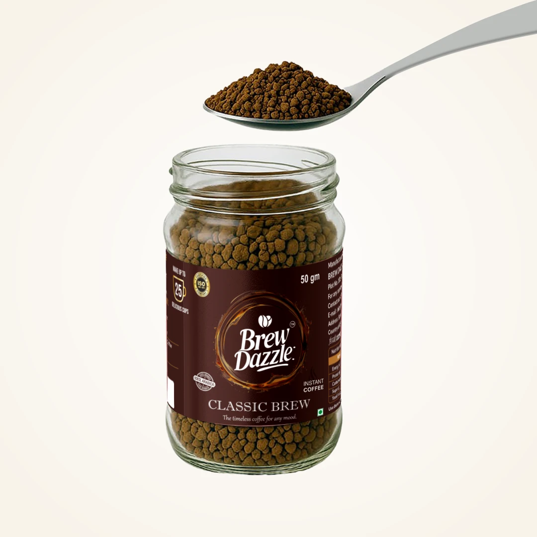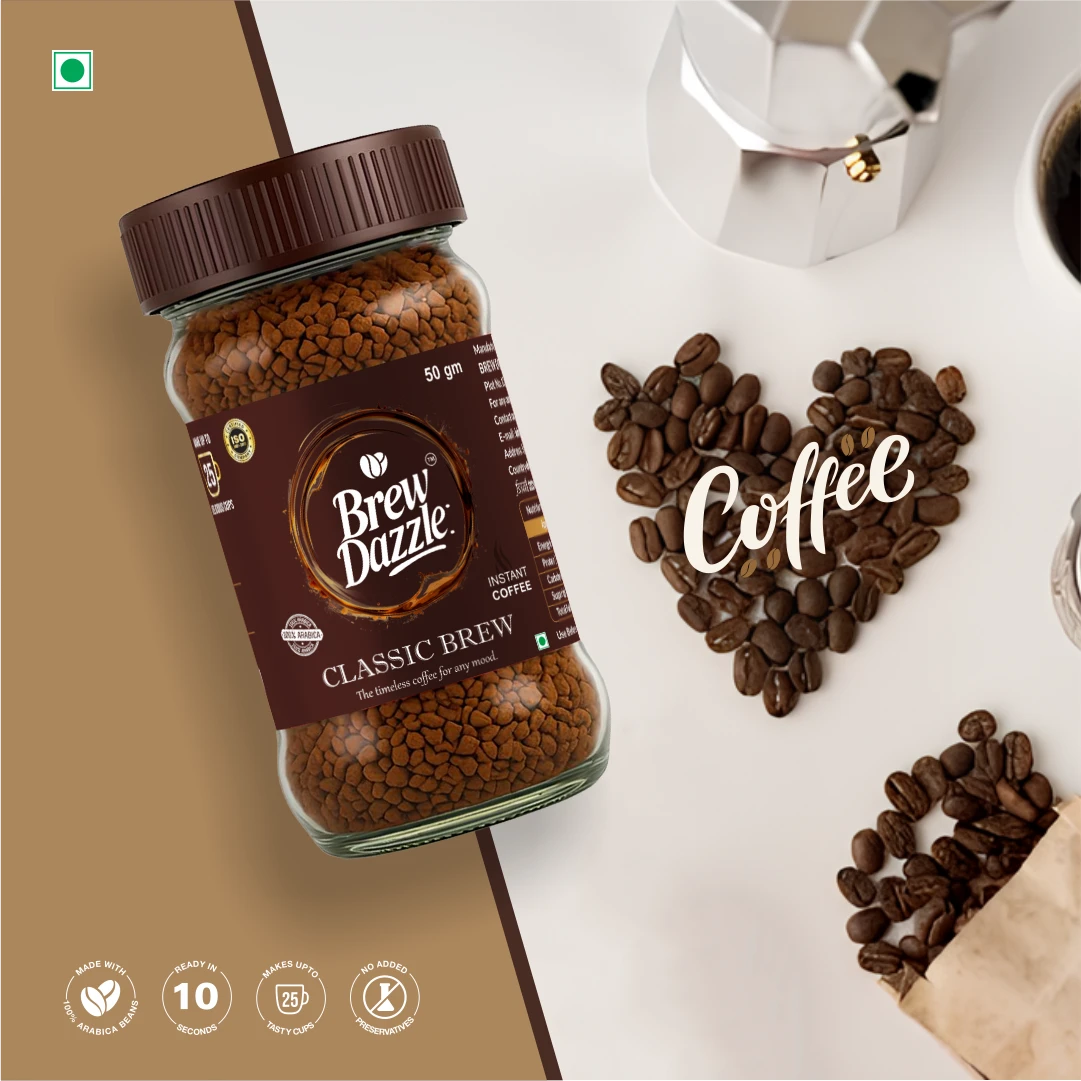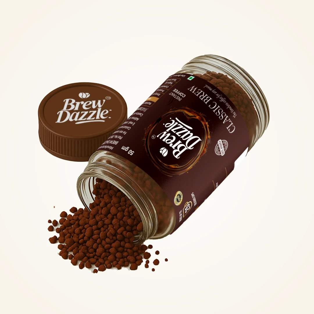 Relish the authentic taste of coffee with BREWDAZZLE Instant Coffee – Classic Brew, your daily dose of perfection!