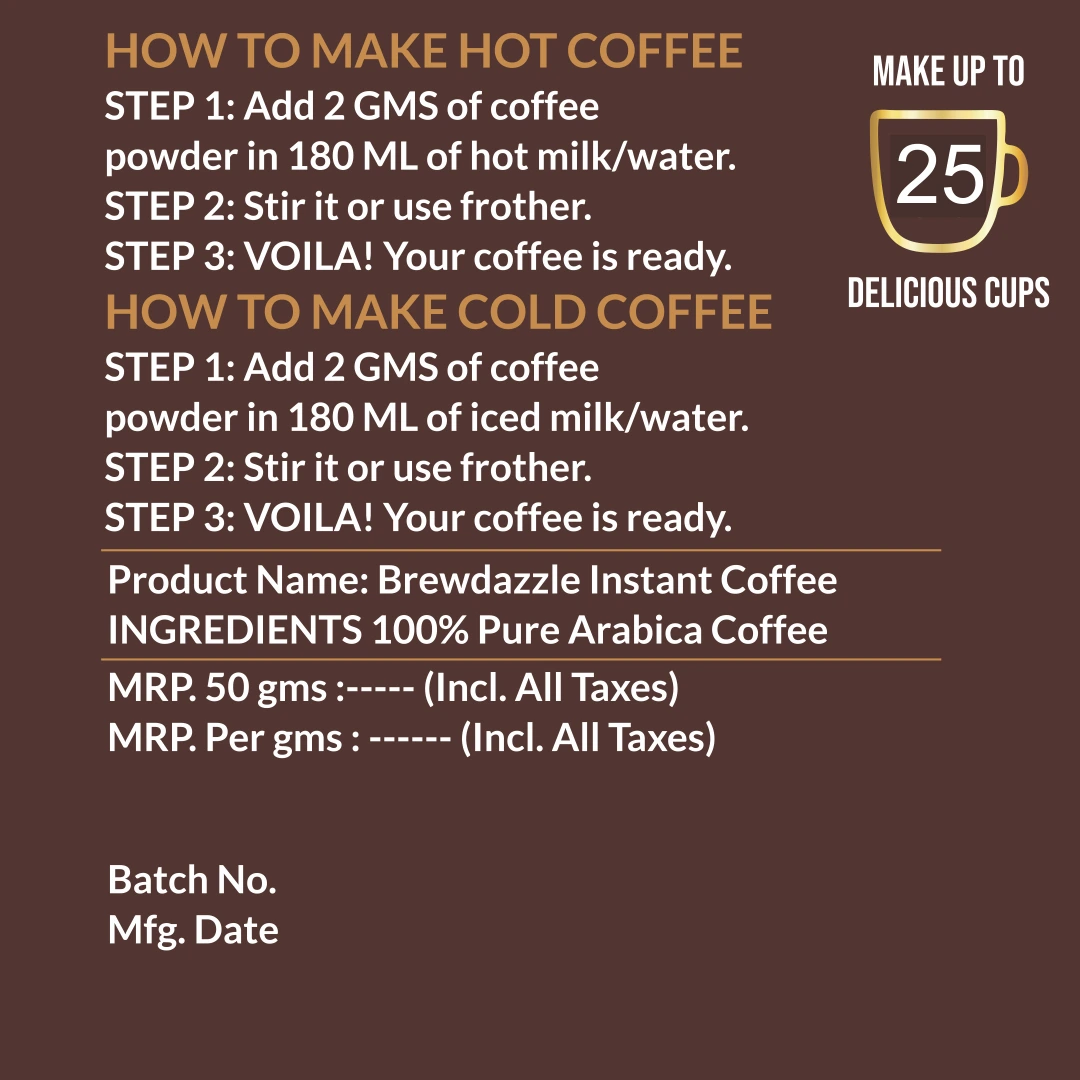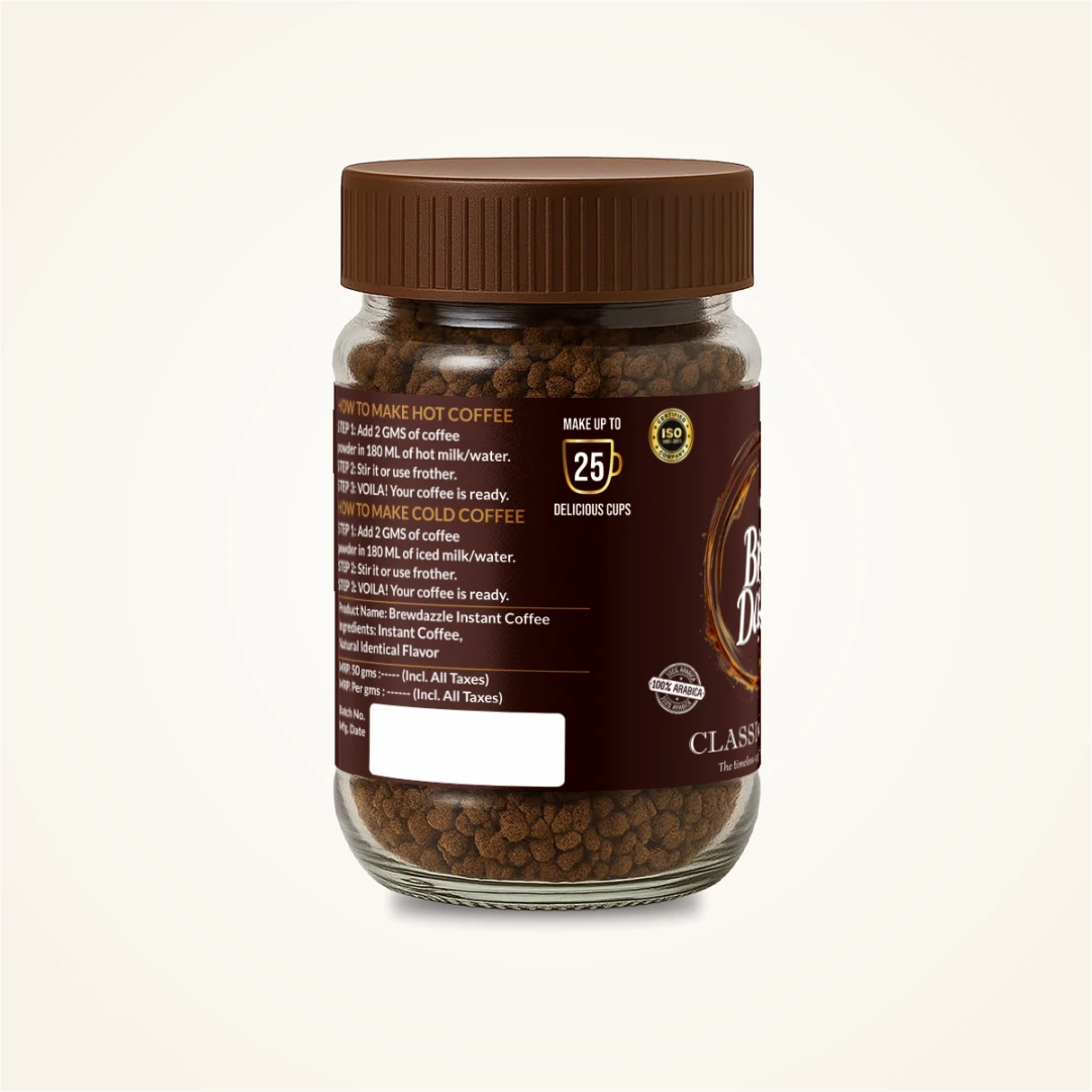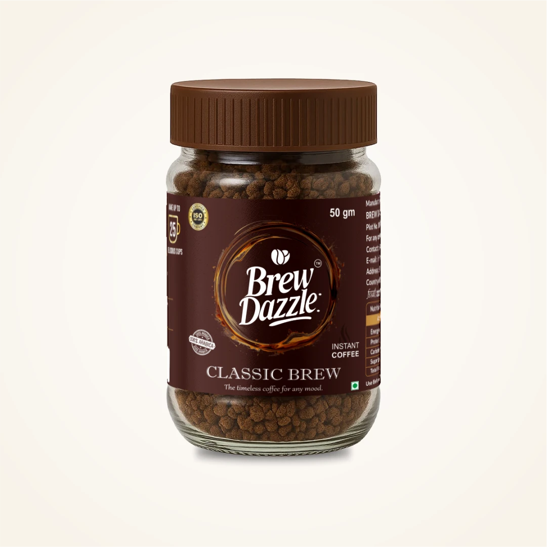 Relish the authentic taste of coffee with BREWDAZZLE Instant Coffee – Classic Brew, your daily dose of perfection!