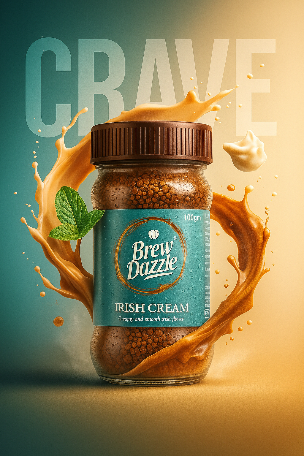 Bring a touch of elegance to your day with BREWDAZZLE Instant Coffee – Irish Cream!