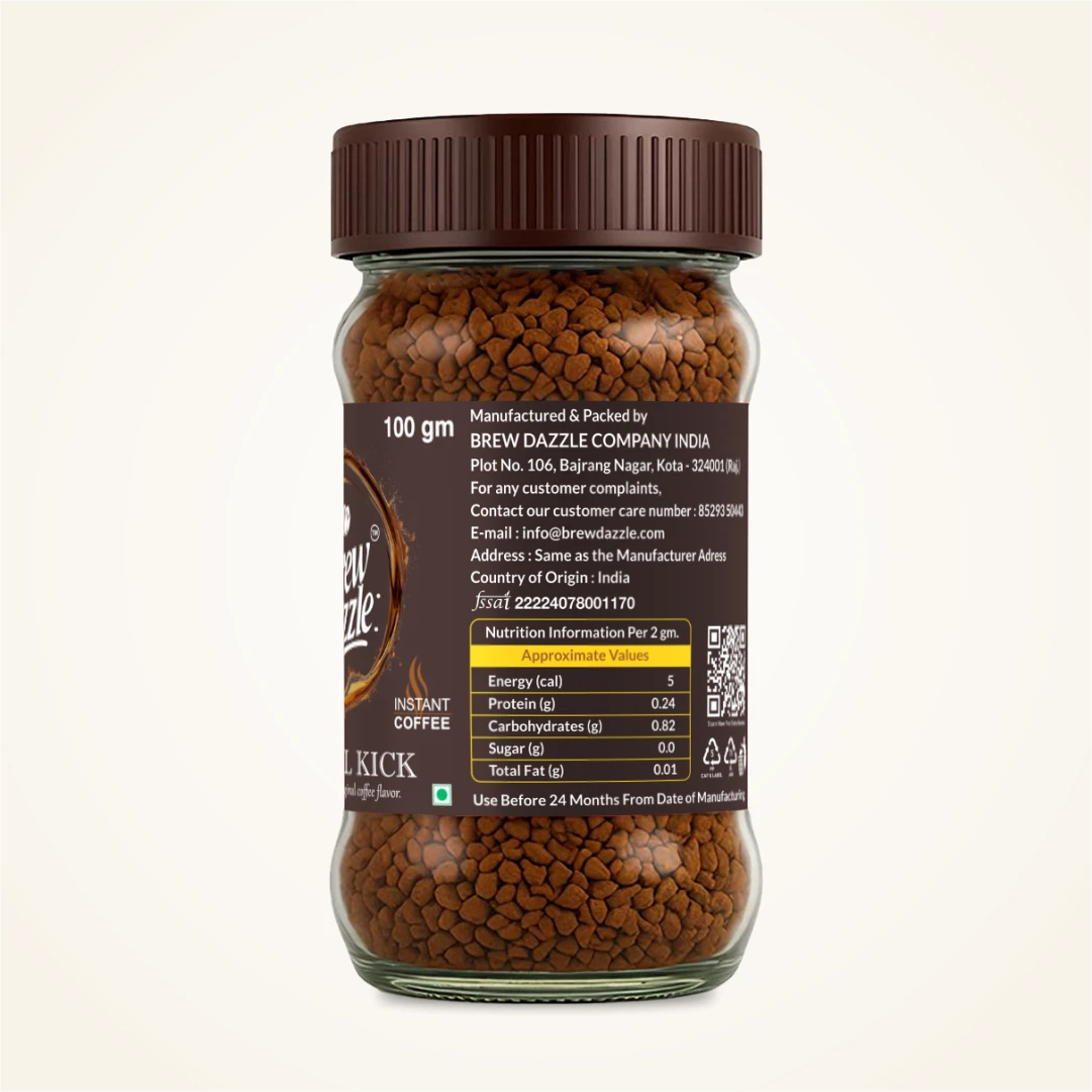 Original Kick Brew Dazzle | 100 gm Coffee Jar | Premium 100% Arabica Instant Coffee Granules | 100% Pure Arabica | Smooth & Rich Instant Coffee| Original Coffee taste